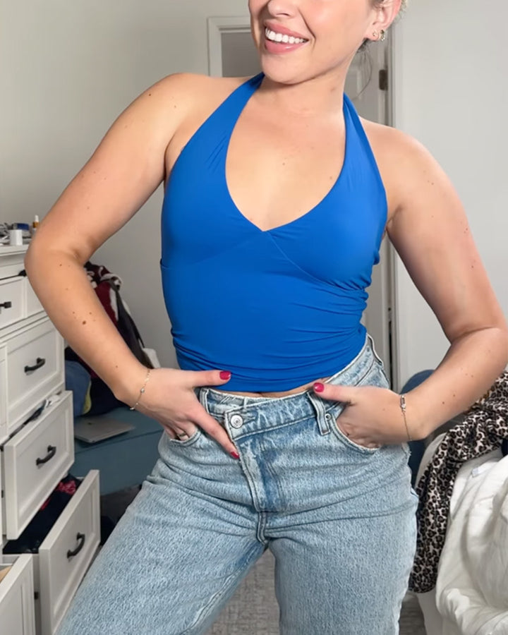 Elevate your summer wardrobe with this chic Women's V Neck Sleeveless Backless Halter Seamless Top—perfect for a sleek, stylish look that combines comfort and elegance for any occasion!
