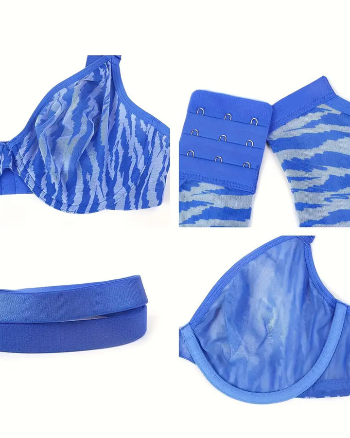 Zebra Print Sheer Mesh Deep V Half Cup Adjustable Wide Strap Bra